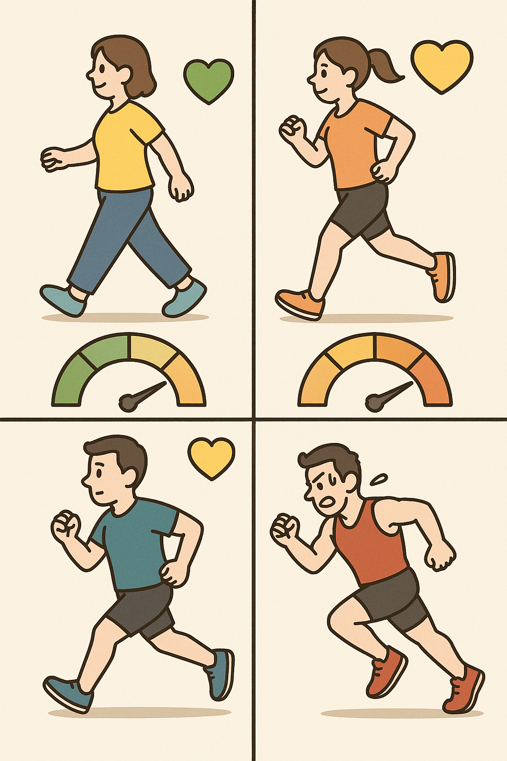 能長時間維持,主要依靠脂肪供能。通常描述為「可以說話但不能唱歌」。 - Zone 3:中等至中高(最大心率的 70–80%)